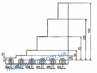 - Искусственные дефекты выполнены в виде плоскодонных отражателей диаметром 4 мм и 5 мм;