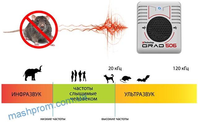 Мощные ультразвуковые импульсы, излучаемые изделием, воздействуют на нервную систему грызунов. В результате, вредители перестают нормально питаться и размножаться. Через некоторое время они будут вынуждены покинуть обжитую территорию и удалиться от источника беспокоящего шума на безопасное расстояние (более 100 м).