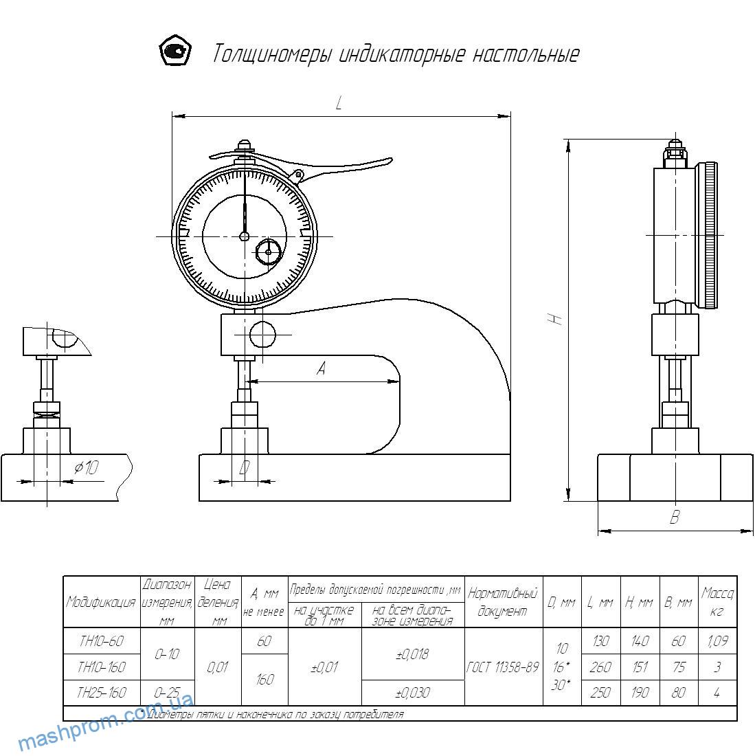 ТН-10, ТН-25 — настольные толщиномеры с нормированным измерительным усилием;
