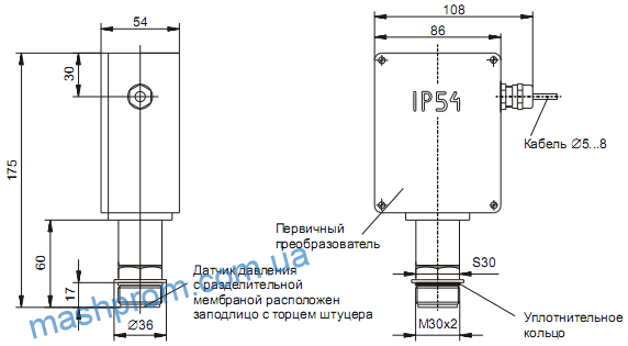 Первичный преобразователь питается от измерительного прибора напряжением постоянного тока +24 В.