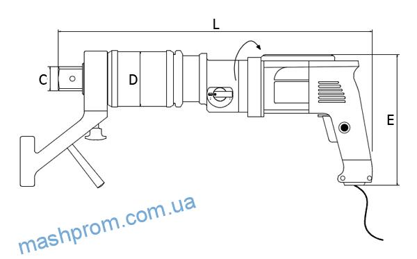 | Модель | Крутящий момент, Нм, вращение по час. стрелке / против | Выходной квадрат, дюйм | Диаметр, D, мм | Длина L, мм | Частота вращения, об/мин | Масса, кг |